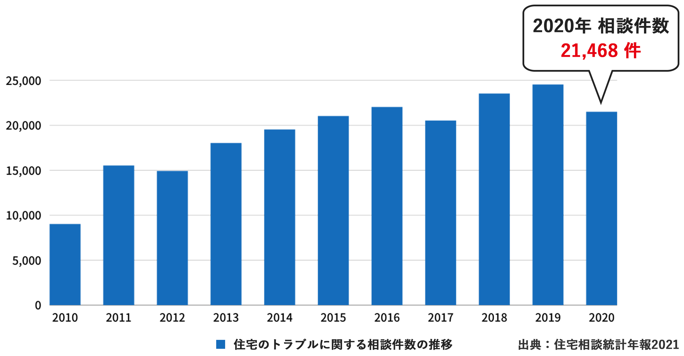 住宅のトラブルに関する相談件数は毎年右肩上がりに増加しています。