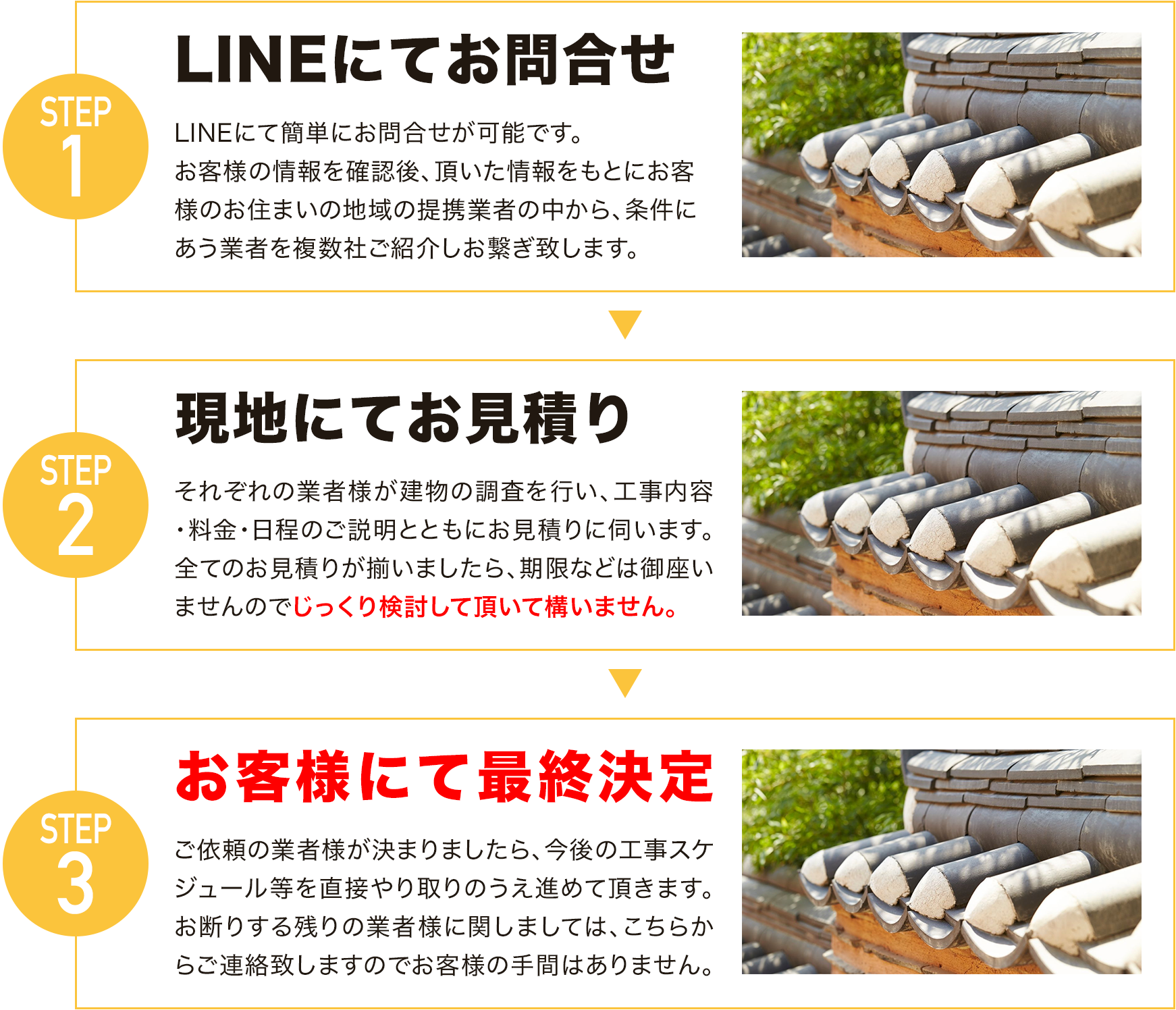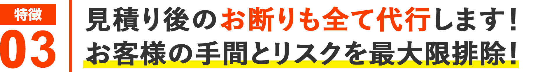 「見積りまでしてもらったのに申し訳ない」というお客様のために、 お断りをする業者へのご連絡もこちらで丁寧に対応させて頂きます。