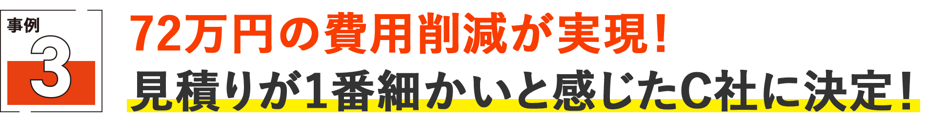 その中でもC社を選んだ理由としては、見積りの説明が1番細かく、こちらが全て納得できるまでしっかりと説明してくれたことです。