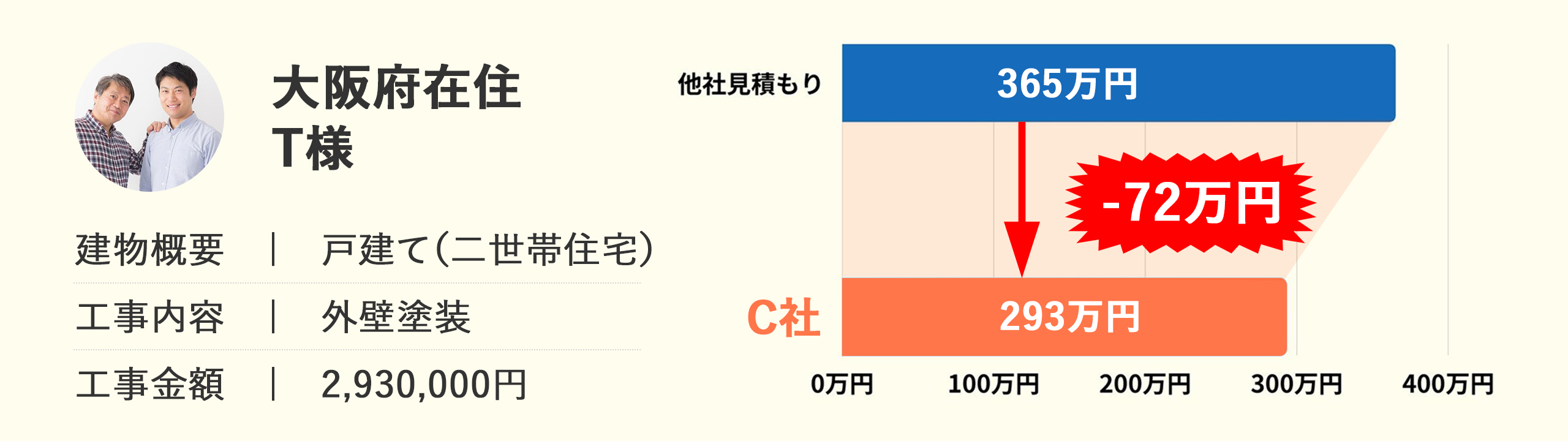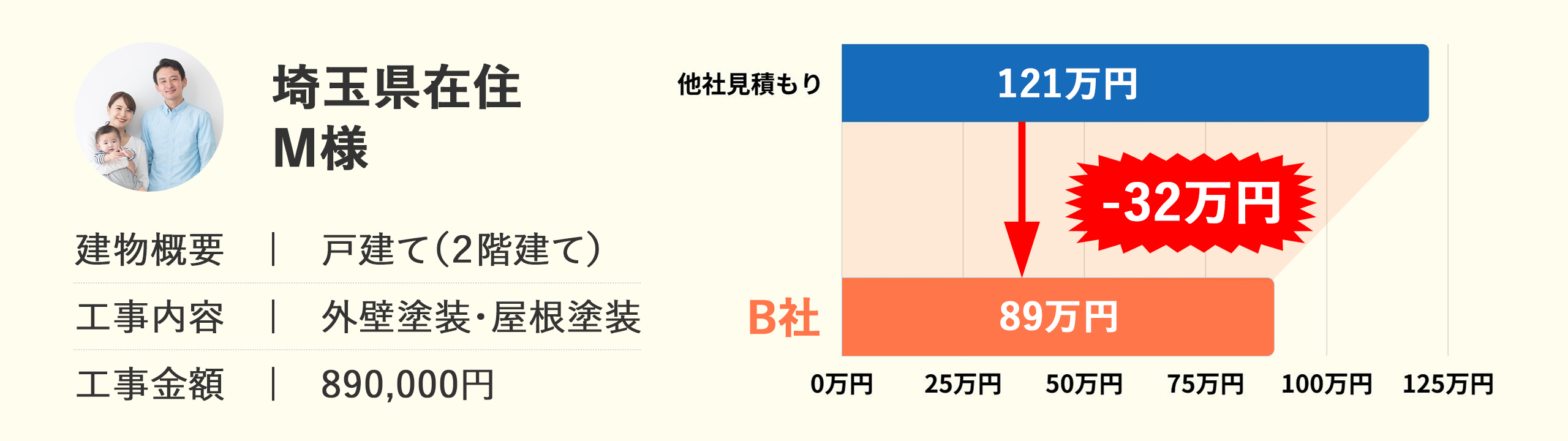 最安値の見積りを提示してくれた業者さんにお願いすることにしたのですが、最終的に最初の業者さんよりも54万円も安く済ますことができました。